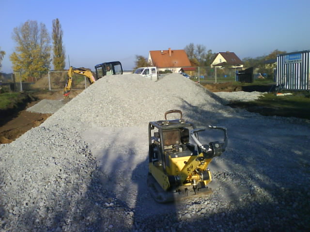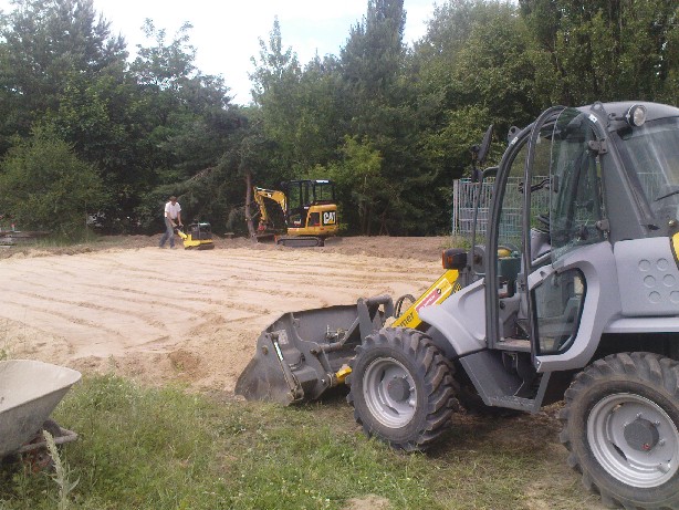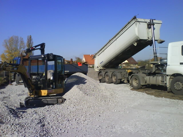 einbringen einer 30cm starken Tragschicht aus Beton-Recycling